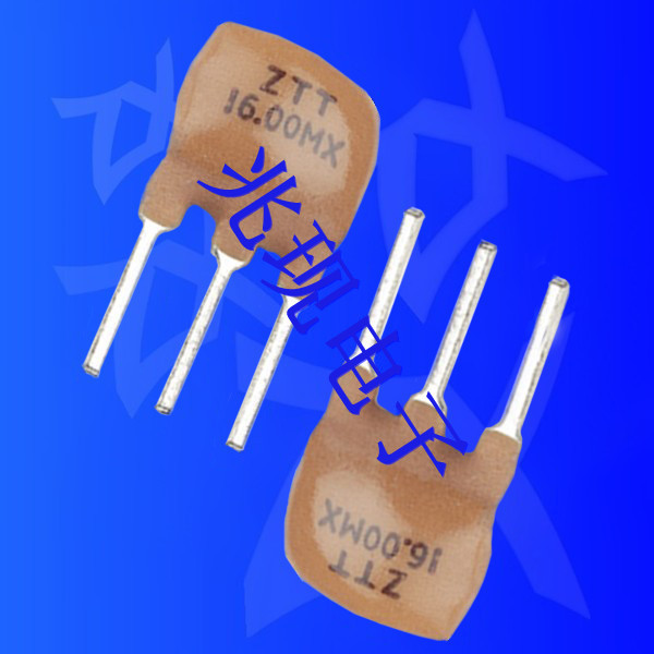 壓電陶瓷諧振器,ZTT16.00MX,陶瓷振蕩子,兆現(xiàn)電子生產(chǎn)的陶瓷諧振器ZTT系列是在原有的ZTA晶振內(nèi)部添加了內(nèi)置負(fù)載電容,引線腳于原來的二腳演變成三腳直插式,這樣一來減去了外部線路設(shè)計時可以省去電容部分,大大減少了線路空間,且可減少元器件的數(shù)量,增加穩(wěn)定性,減小尺寸,為電路設(shè)計者們提供了非常的方便,并且外形尺寸也沒有太大的改變.此規(guī)格的頻率范圍在 2.0 MHz 至 60.00 MHz,頻率公差為 ±0.5%,±0.3%.ZTT三腳陶瓷諧振器產(chǎn)品系列可用于振蕩電路設(shè)計,無需外部負(fù)載電容器,既獲得了高密度安裝,又降低了成本.產(chǎn)品被廣泛應(yīng)用到數(shù)碼電子產(chǎn)品,家用電器,無線發(fā)射器,調(diào)音線控等電子產(chǎn)品.