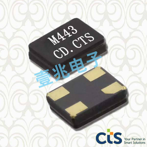 CTS晶振,貼片晶振,443晶振,石英晶體諧振器,低頻晶振可從12MHz起對應,小型,超薄型具備強防焊裂性,石英晶體在極端嚴酷的環境條件下也能發揮穩定的起振特性,產品本身具有耐熱,耐振,耐撞擊等優良的耐環境特性,滿足無鉛焊接以及高溫回流溫度曲線要求