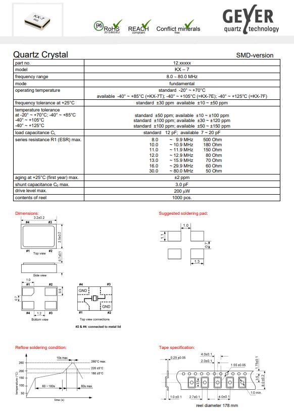 | 12.60233 | GEYER | CRYSTAL 25.0MHZ 12PF SMD | KX-7T | ±20ppm | -40°C ~ 85°C | 4 | 3225 | Geyer Electronic America, Inc. |