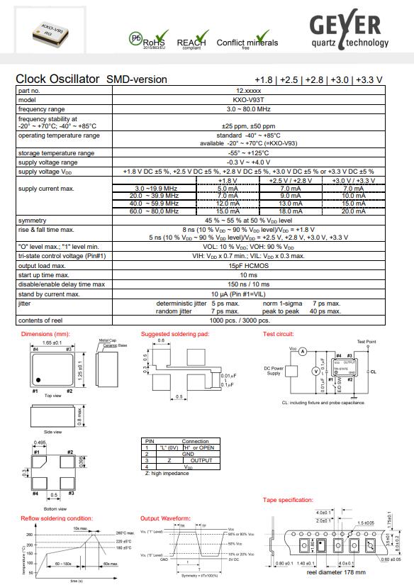 | 12.90344 | GEYER | XTAL OSC XO 4.0000MHZ SMD | KXO-V94T | 4 MHz | - | ±50ppm | -40°C ~ 85°C | 4 | 2016 |