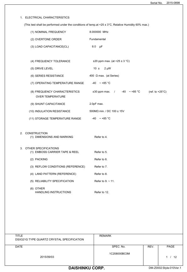 更多>>1C208000BC0M DSX321G 8M 8PF KDS陶瓷黑色晶振