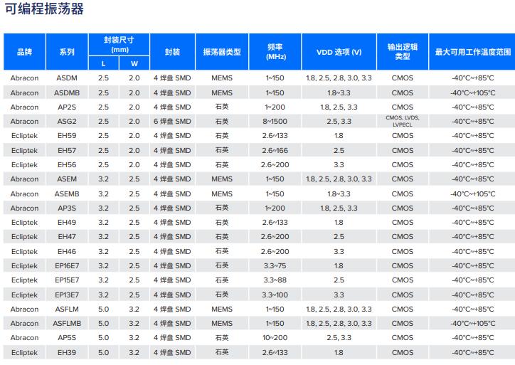 | 晶振編碼 | 晶振品牌 | 有源晶振 | 溫度 | 輸出 | 電壓 | 頻差 | 尺寸 |