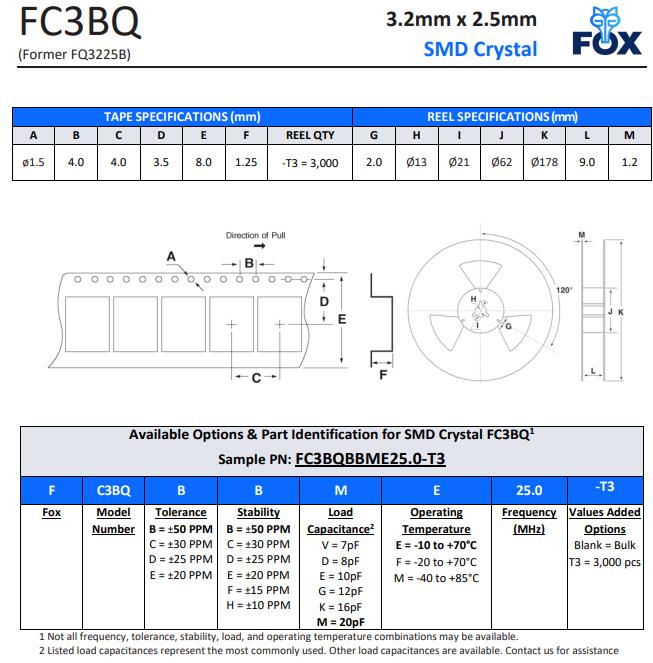 | FQ3225BR-20.000 | FOX晶振 | FQ3225B | MHz Crystal | 20MHz | ±50ppm |
