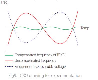 影響頻率穩定性的最大因素是溫度特性.在溫度補償電路的幫助下,該振蕩器實現了溫度特性的高穩定化.由于采用了指定的溫度補償電壓,振蕩器可以輸出更穩定的頻率與環境溫度.主要用于移動通信設備頻率合成器的標準振蕩器.PDC(個人數字蜂窩)、GSM(全球移動通信系統)、GPS(全球定位系統)等要求的+ / -2.5ppm最大溫度穩定性高頻率.這樣的要求不能滿足于切割晶體單元.此外,不同晶體單元在溫度特性上存在著細微的差別.因此,需要對溫度補償電路進行補償以獲得較高的溫度穩定性.