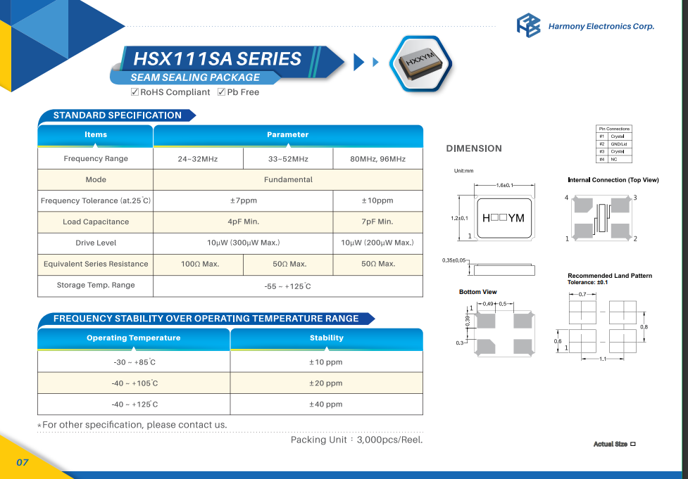 更多>>X1C032000B81H-DEHPV HSX111SA 1612 32M 8PF 10PP加高無(wú)源晶振