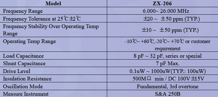 晶振規格: